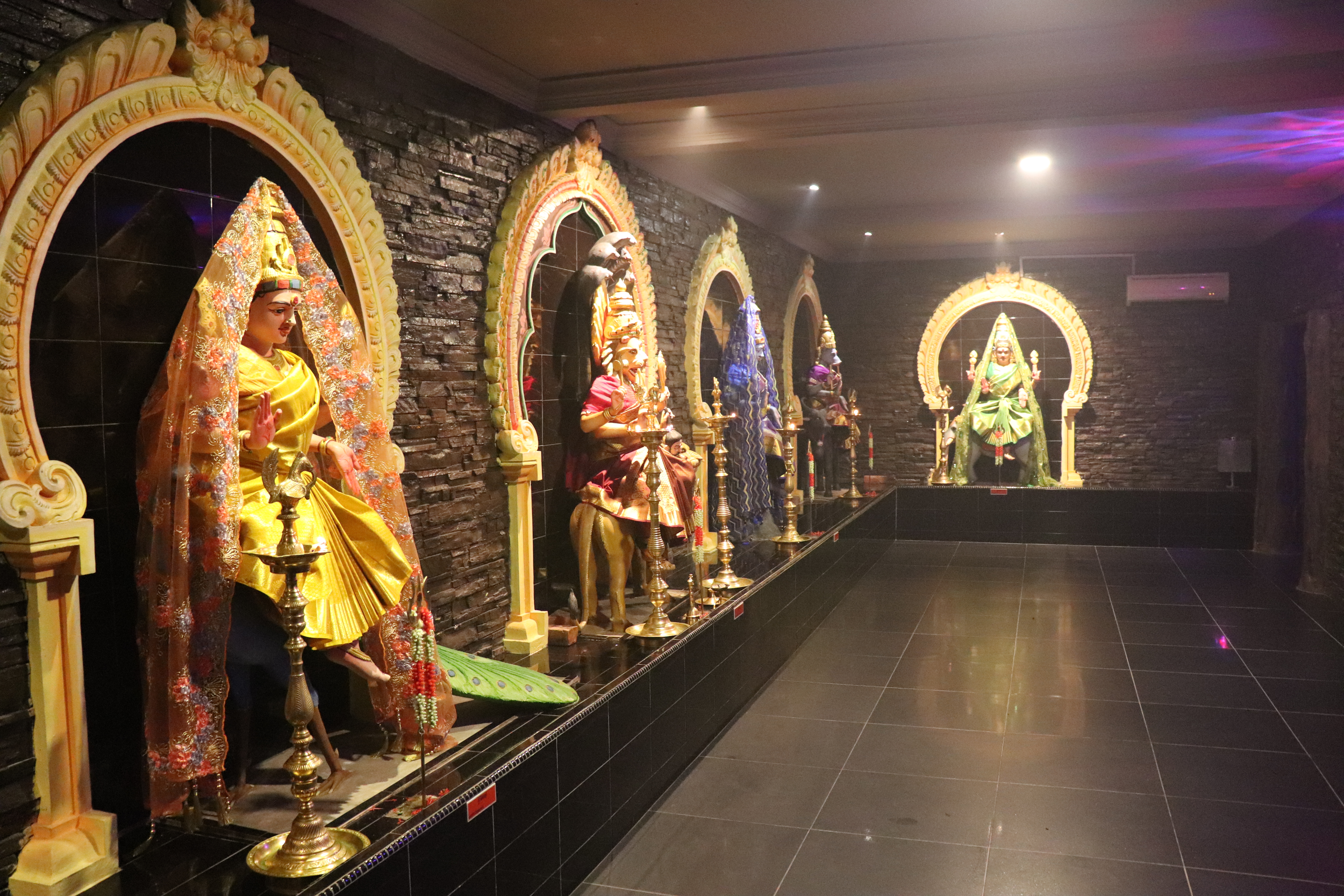 Pratama Devatha ShrineThe Maha Kaali statue with 10 hands, installed in the underground hall, is the 1st of its kind in Malaysia — crafted from 100% fibre by the finest sculpture artists in Calcutta, Bengal.